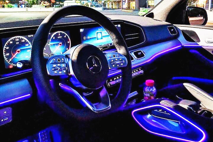 앰비언트 라이트는 64가지 색상으로 설정 가능하며, 여러 가지 색상을 순차적으로 전환시키는 멀티 컬러 기능은 탑승자의 감성을 더욱 자극한다. 앰비언트 라이트는 엔트리 모델인 A클래스부터 플래그십 모델인 S클래스까지 모든 모델에 적용되어 있다.