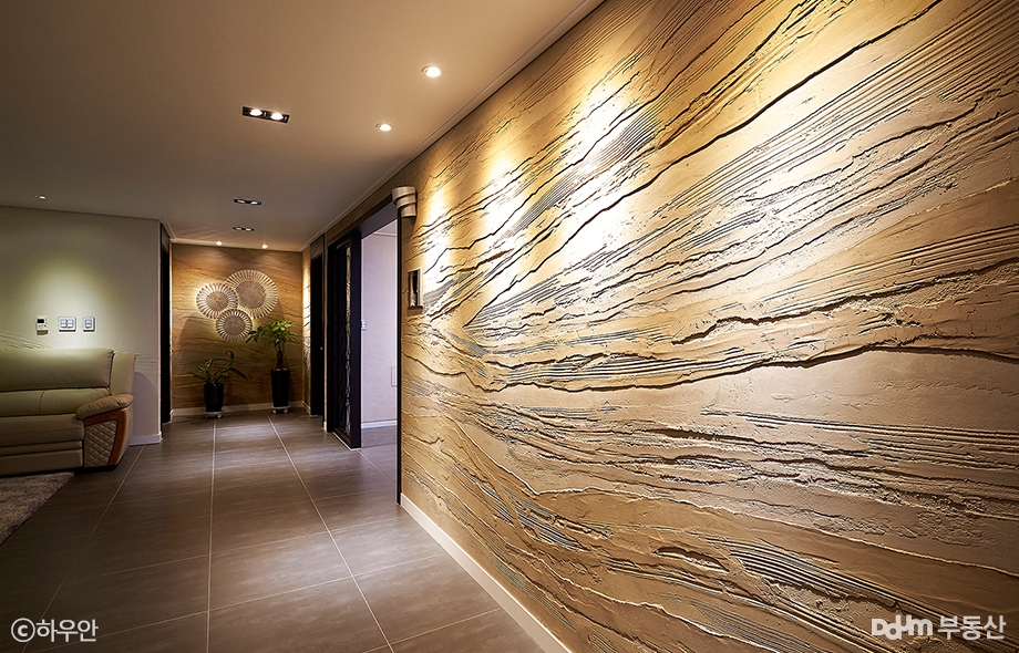 입구부터 다르다! 조명과 벽무늬로 압도하는 현관