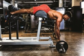 운동 방법: 수평 백-익스텐션 머신을 위에 안전하게 자리 잡자. 엉덩이부터 상체 전체가 부담 없이 여유롭게 위로 들려야 한다. 언더핸드 그립으로 바벨을 잡고 몸을 일으켜 세우자. 바를 흉곽 높이까지 들어 올림과 동시에 몸은 바닥과 평행을 이루어야 한다. 바를 먼저 천천히 낮추고, 그런 다음 상체를 낮춰서 다음 반복을 준비하자.