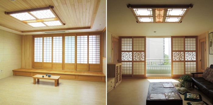 한식 조명과 더불어 한식 인테리어는 나무가 주는 색상 그리고 질감 덕분에 시공하는 것만으로도 냉랭했던 아파트 인테리어를 따뜻한 공간으로 만들 수 있습니다.