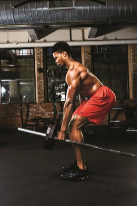 운동 방법: 바벨을 랜드마인과 연결하자. (랜드마인이 없다고? 그렇다면 바벨의 한쪽 끝을 수건으로 감아서 이를 대체하자.) 반대쪽 끝에는 적절한 무게의 중량을 끼운다. 이제 바벨과 수직 방향으로 서자. 바벨 가까운 곳의 바를 잡고 벤트오버 로우를 할 때처럼 자세를 취한다. (몸통을 단단히 유지하기 위한 한 가지 팁은 바를 잡지 않은 손으로 복부나 허리를 잡는 것이다.) 그런 다음 플레이트가 늑골에 닿을 정도까지 로우 동작을 수행하자.
